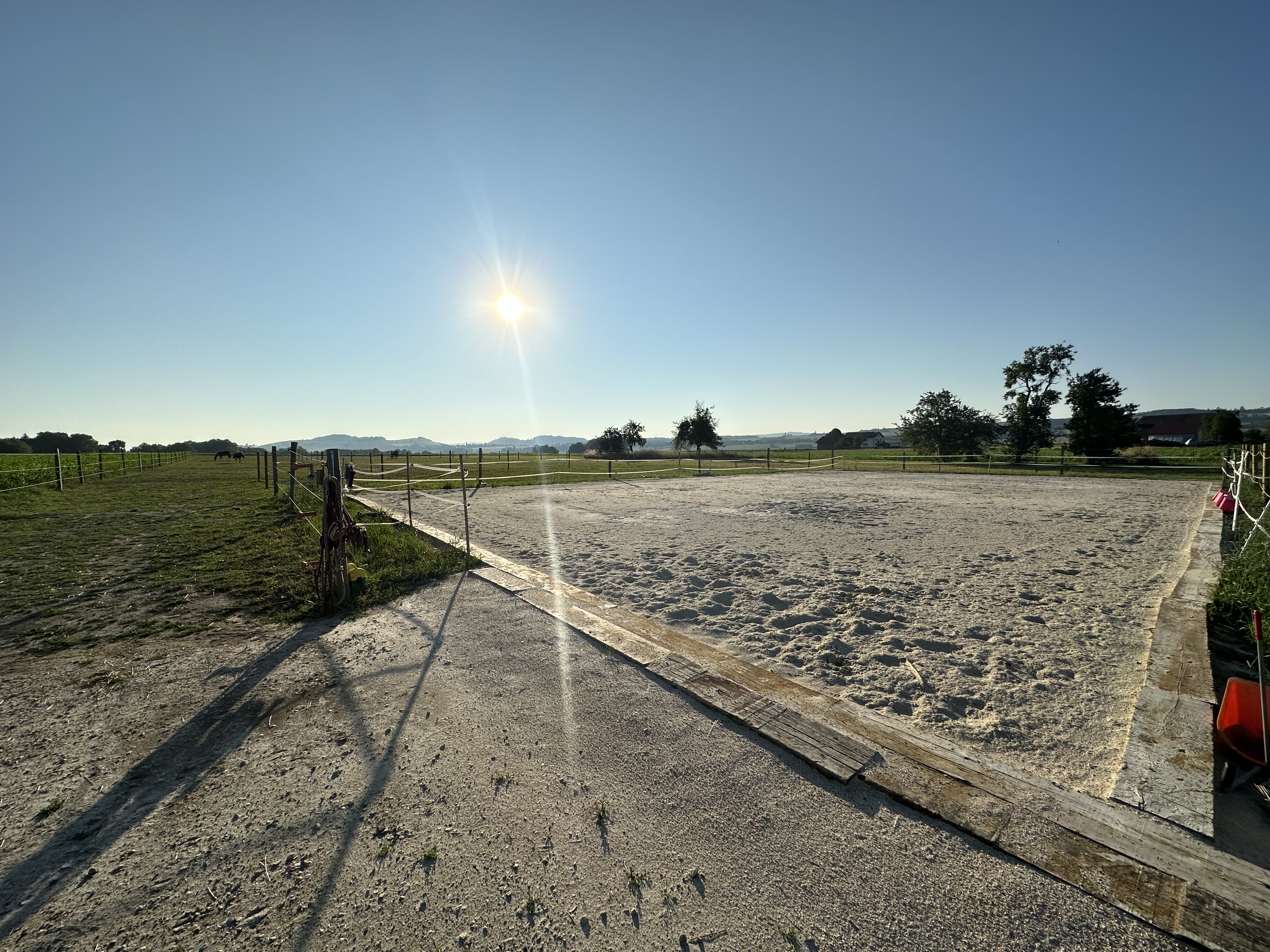 - Paddock en sable à disposition toute l'année; possibilité de travailler sur une place en herbe quand le temps le permet